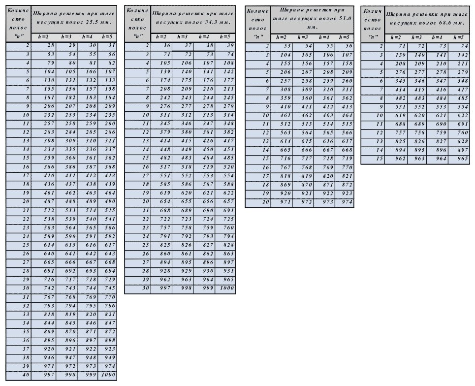 Стандартная ширина решетки в зависимости от шага несущих полос сварного решетчатого настила